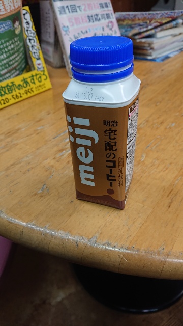 湯上がり、明治コーヒー150円。だいぶ水分が抜けた、アルコールが回る