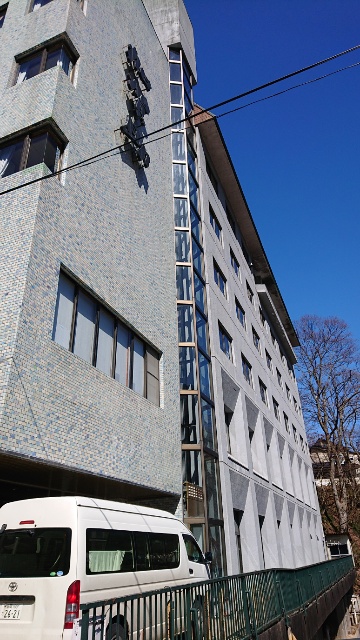 ロビーで入湯料1000円を払い、エレベーターで6階、温泉街の風景が