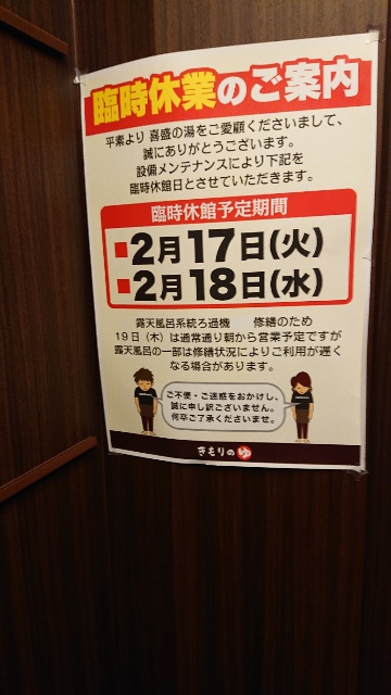 と言う訳で今日の喜盛の湯、露天風呂が寒くて湯けむりで完全に視界が大