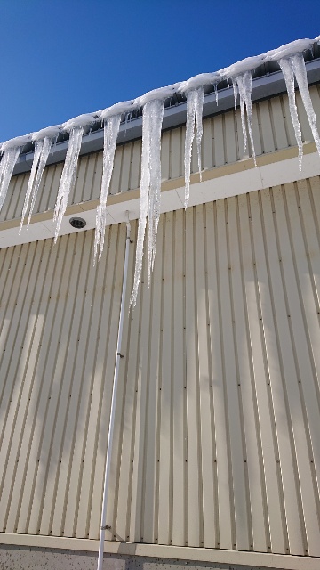 今年の雪はヤバいな、昨日も新雪を踏みしめたら、膝下まで埋まって、全 くブーツ(くるぶしから10cmくらい)が役に立たない。というか、雪かきさ れてない場所を歩くのマジ無理。 で、こんなつらら発見、3mはありそうな長さ。薮川や区界ならともかく、 向中野でこれって大丈夫か?