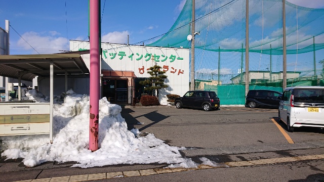 今年一発目のバッティングセンター。さっきまで降っていた雪がやみ、少