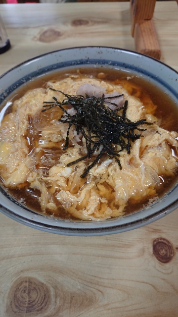 で、注文は親子そば(笑、玉子は綴じた方)おろし生姜の辛さがいいねえ。