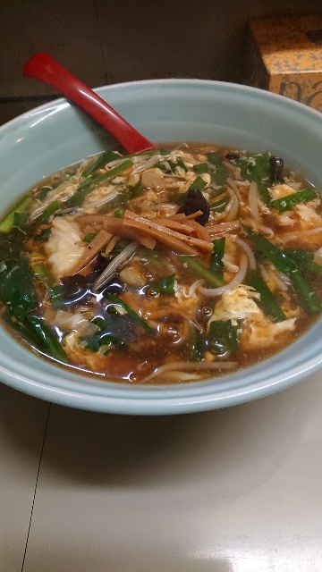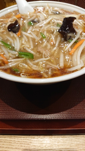普通のラーメンより一回り大きい丼で来た。あんかけもやしスープの攻略で
