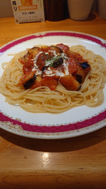 パスタは少し固めの茹で上がり。スパイシーなトマトソースに香りのある
