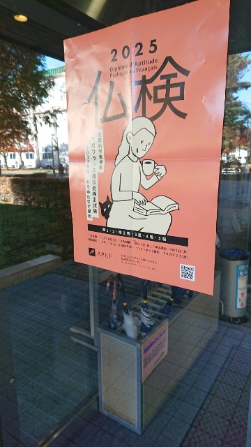 もう年末だな、この試験が終わったらいよいよ年末の支度だな(いやまだ 銭湯検定があったか)。寒さ対策に悩んだが、とりあえず晴れた。 バスを使うと近いな。早く着きすぎた。それはともかく、クマ出没で自動 ドア停止、手で開閉、というのが。 晴れててもやっぱり寒かった。試験前にトイレ行っても、試験中はもよお すものと戦いながら(汗)。やっぱ長文問題がむずい。 Dicté前の小休憩もトイレ。今回はまあまあだった。まだ13時なのに夕暮 れかと思うほど日が低い。
